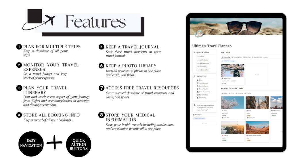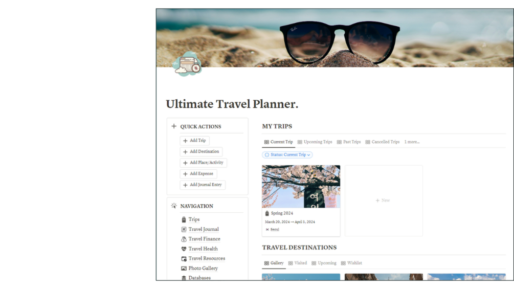 Experience the joy of hassle-free travel planning and make every trip unforgettable with Notion Ultimate Travel Planner Template. Start your journey today!