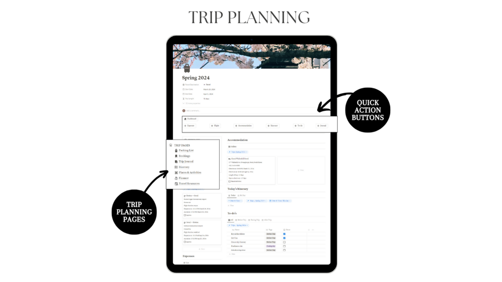 Embark on your next adventure with our Notion Ultimate Travel Planner Template. Designed to streamline your travel planning process, this template offers a comprehensive toolkit to organize every aspect of your journey. From itinerary planning and accommodation bookings to packing lists and travel expenses tracking, This template has you covered.